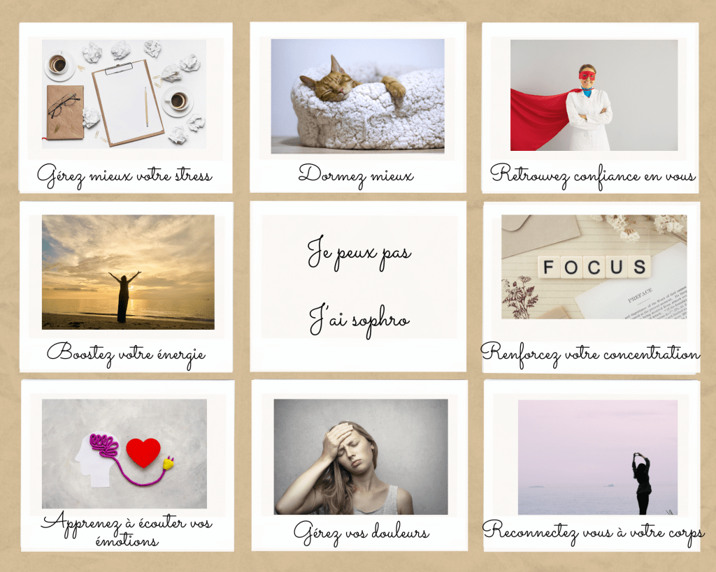 La sophrologie permet de travailler sur la concentration, la gestion des émotions, la gestion de la douleur, la confiance en soi, se reconnecter à son corps et apprivoiser son hypersensibilité et est un formidable outil de gestion du stress au quotidien ou lors d’événements spécifiques comme la prise de parole en public ou pour un examen.